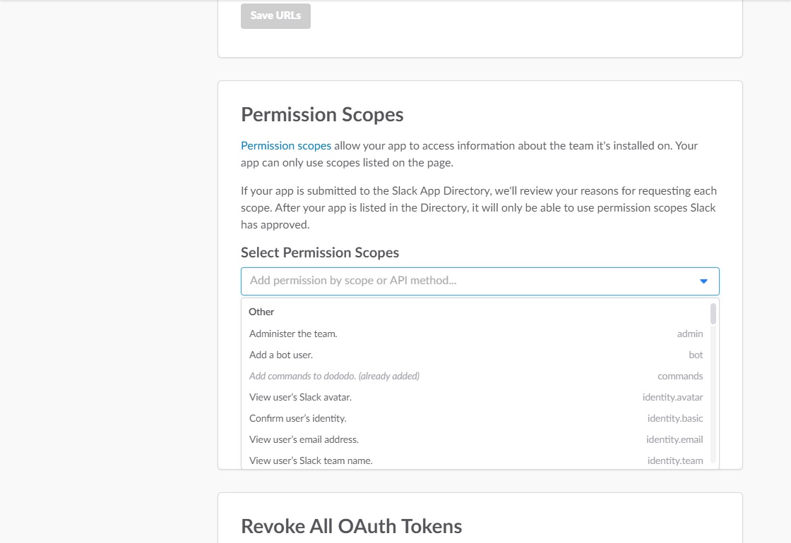 2.Permission Scopesで「commands」を選択。(この画像では選択済みの状態です)