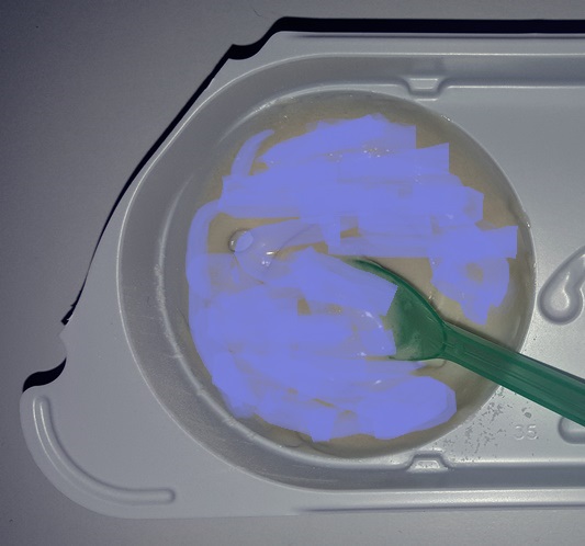 2.まるいトレーに入れたCOMPに水をまぜます。