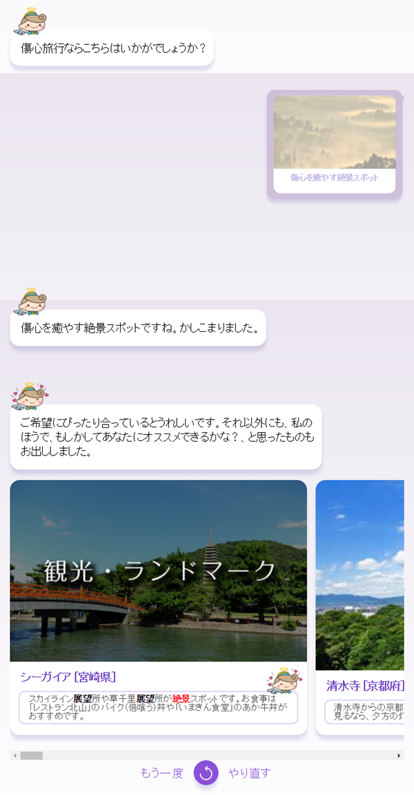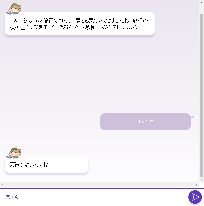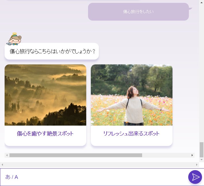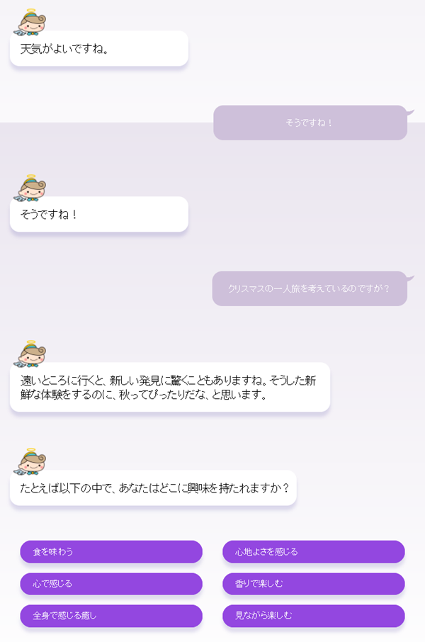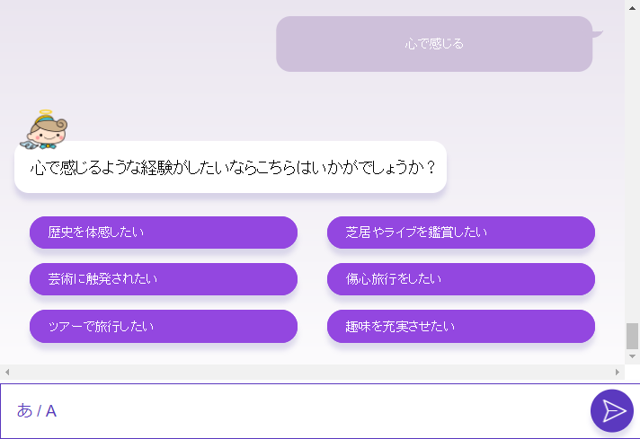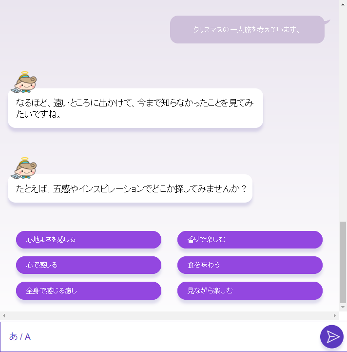 旅行先や旅行プランをAIと対話する中で提案してくれるサービスになります。
