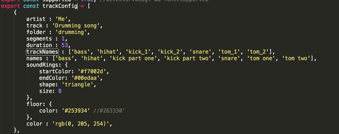 ‘trackConfigというjson形式の変数に自分の分を追加します。