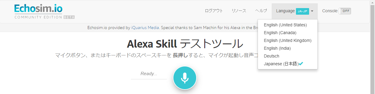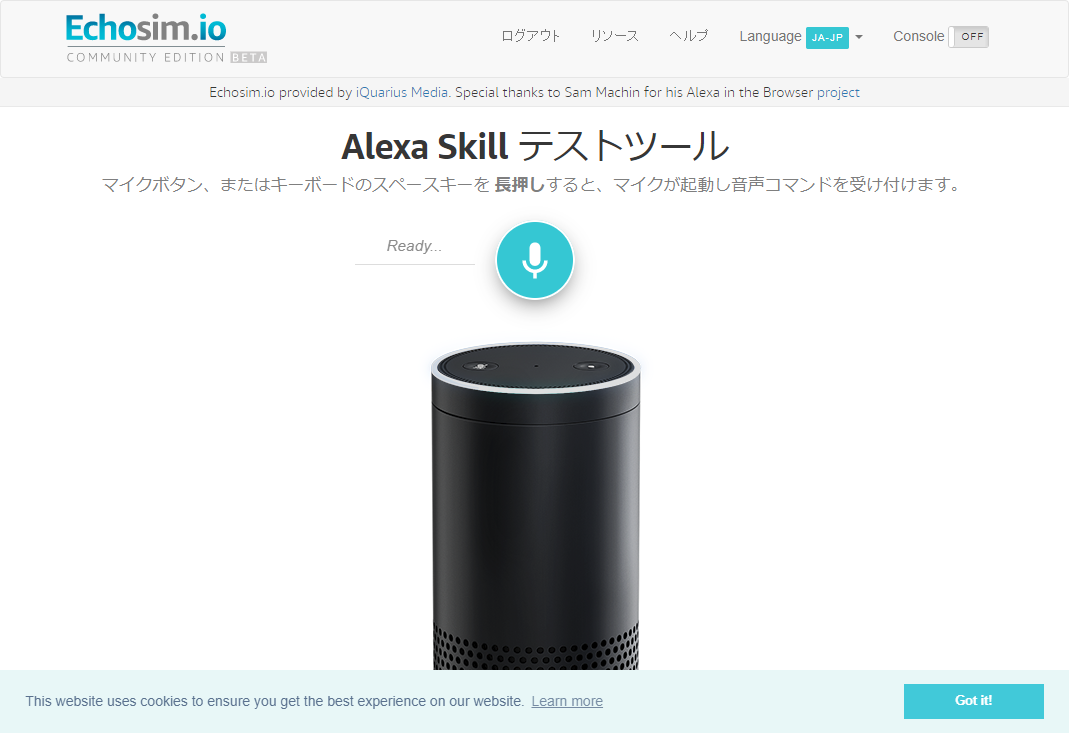 Amazon Echo(というかAlexa)体験がブラウザで行えます。