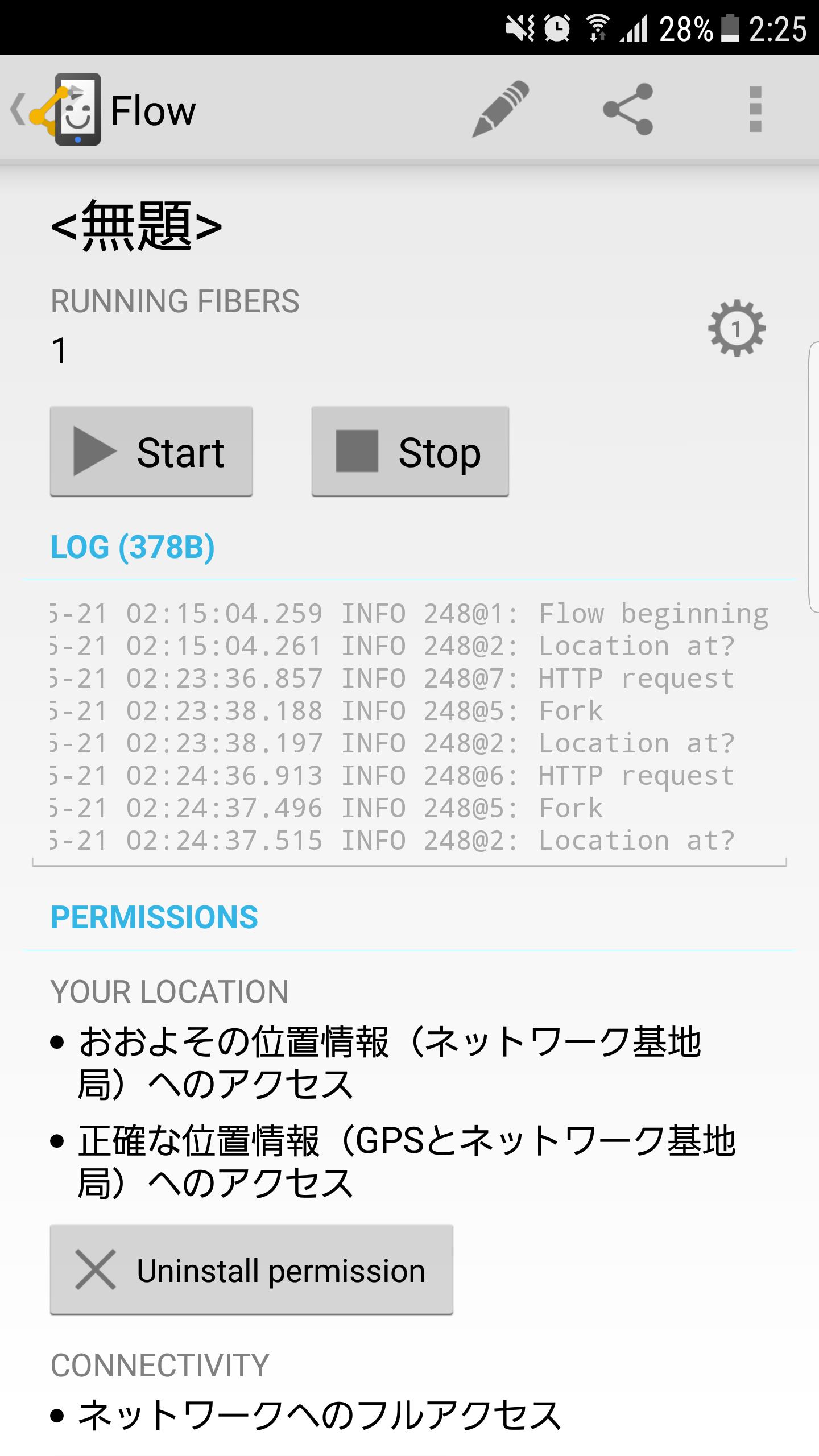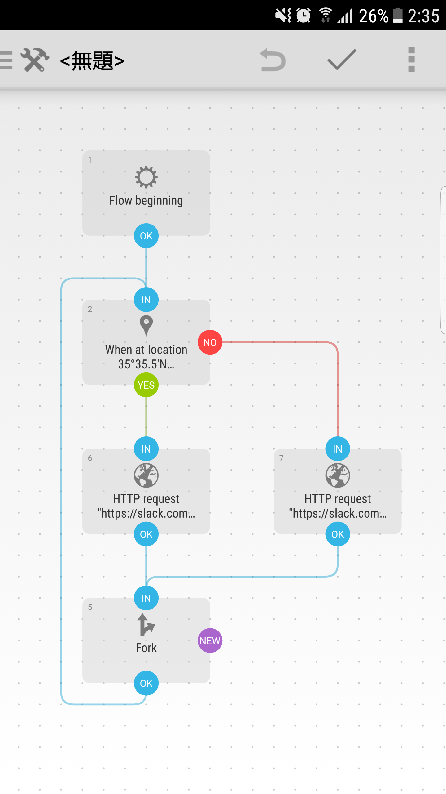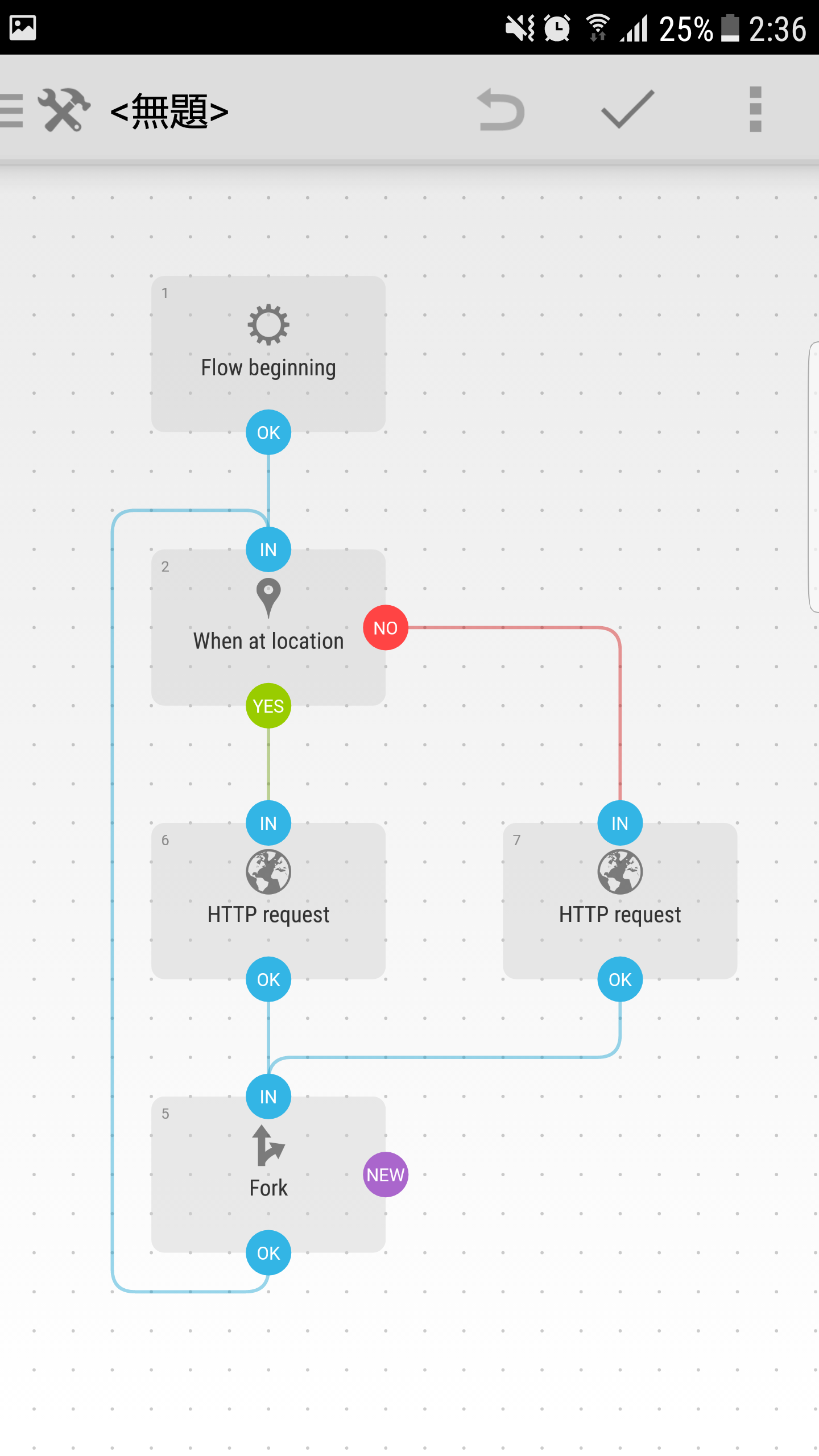 wi-fiから4G等に切り替わるタイミングなんかにHTTP requestが動いちゃうとエラーになるので、場所によっては待ち時間を挟む必要がありそうです。(フローチャートに[DATE & TIME]から「Delay」を追加して設定できます。)