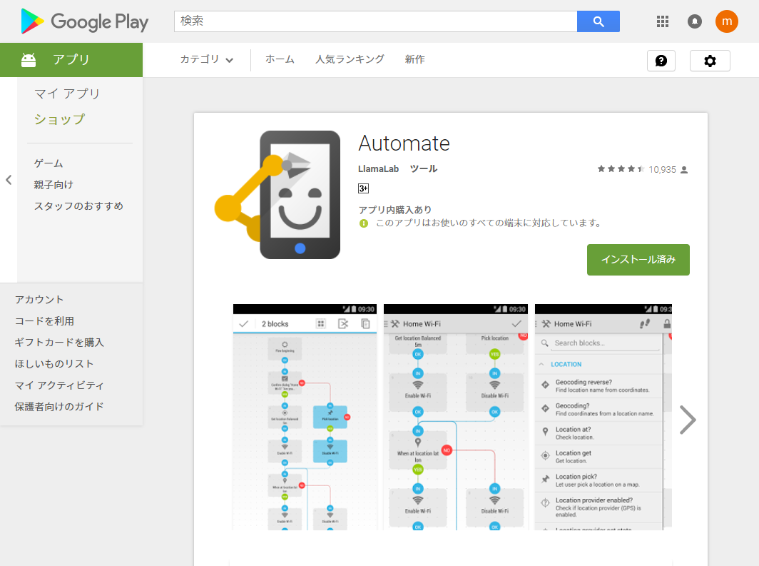 ・Automate(バージョン:1.6.1 Google Play)